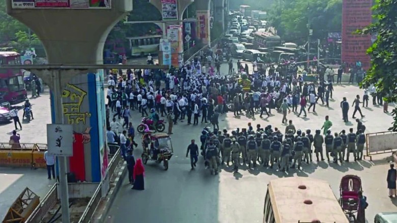 ধানমন্ডি ৩২-এর সামনে পুলিশের সাউন্ড গ্রেনেড নিক্ষেপ